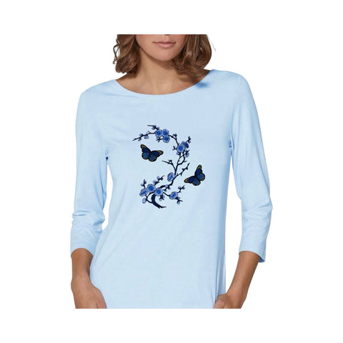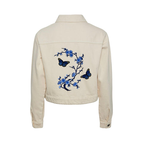Bloesem Bloemen Vlinder Strijk Embleem Patch Set Blauw